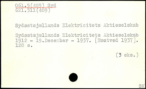 SydøstSjællands Elektricitets Aktieselskab SydøstSjællands Elektricitets Aktieselskab 1912 - 19.December - 1937. [Næstved 1937 j.