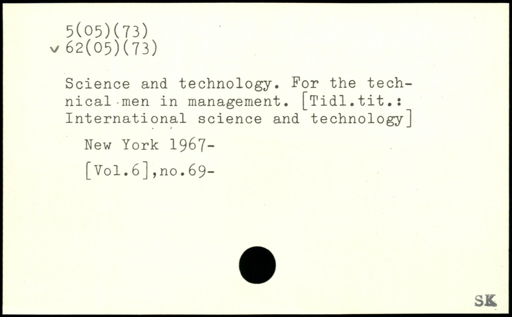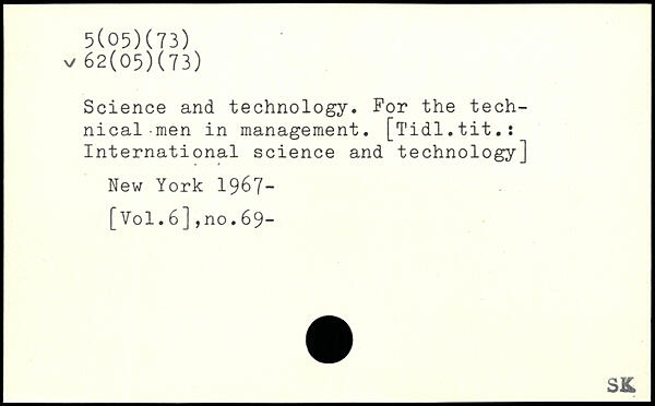 Science and technology. For the technical-men in management. [Tidl.tit.: International science and technology]