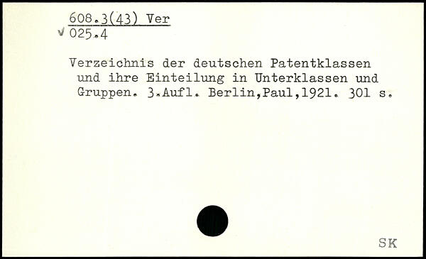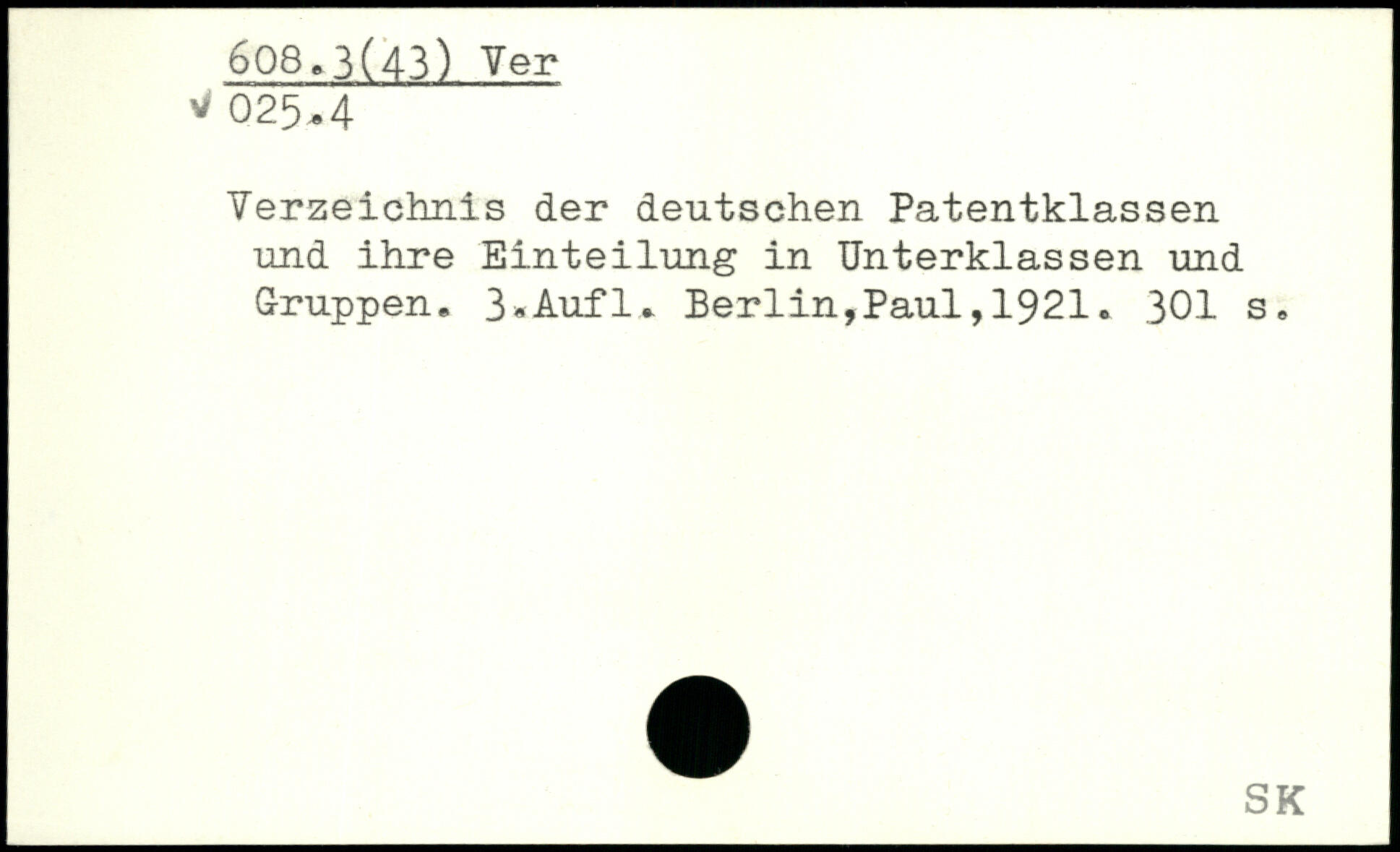 Verzeichnis der deutschen Patentklassen und ihre Einteilung in Unterklassen und Gruppen.