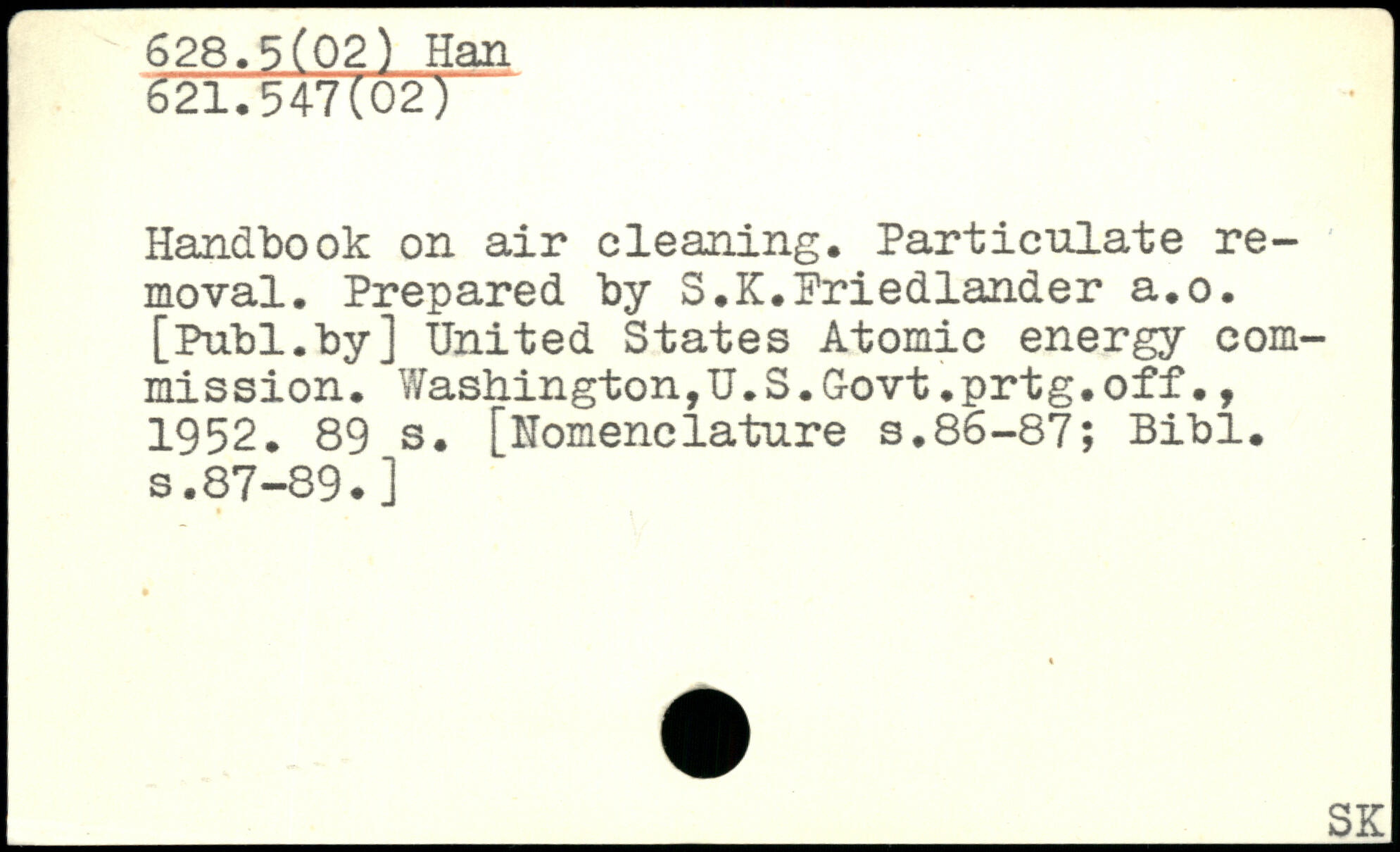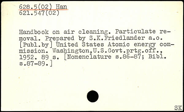 Handbook on air cleaning. Particulate removal. Prepared by S.K.Priedlander a.o.