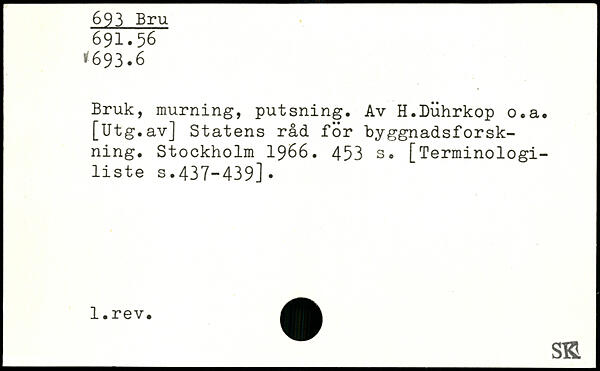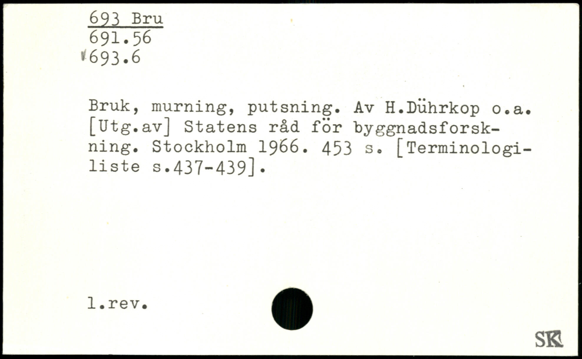 Bruk, murning, putsning. Av H.Diihrkop o.a. [Utg.av] Statens råd for byggnadsforsk-ning.