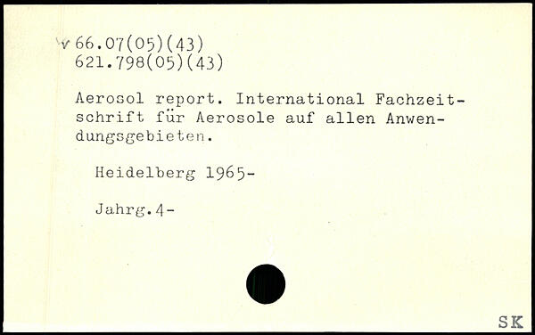 Aerosol report. International Fachzeitschrift für Aerosole auf allen Anwen- dungsgebie ten. Heidelberg 1965-J ahrg.4 -