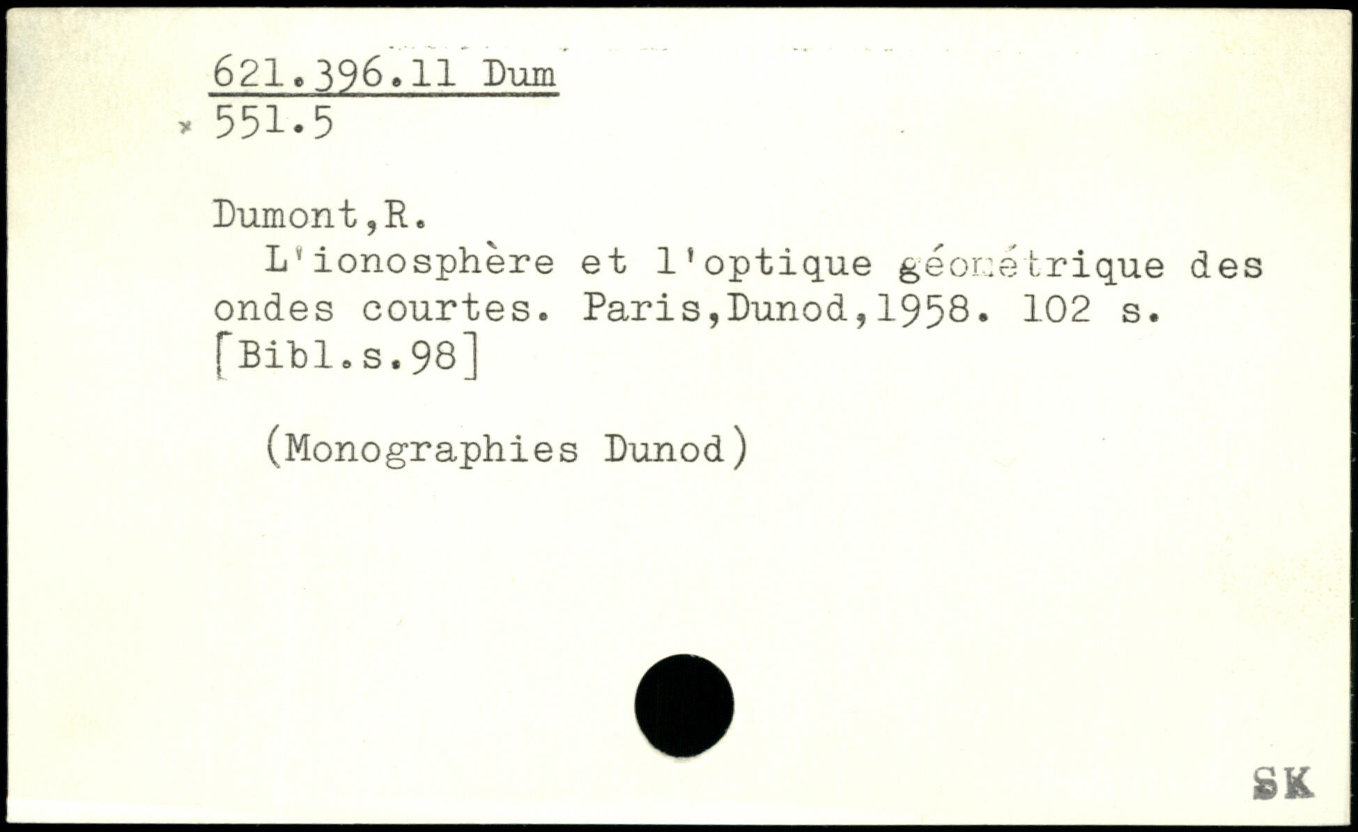 L'ionosphère et l’optique géométrique des ondes courtes.
