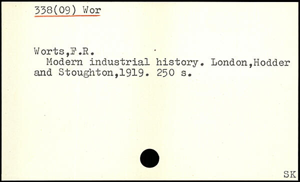 Modern industrial history, London,Hodder and Stoughton,1919. 250 s.