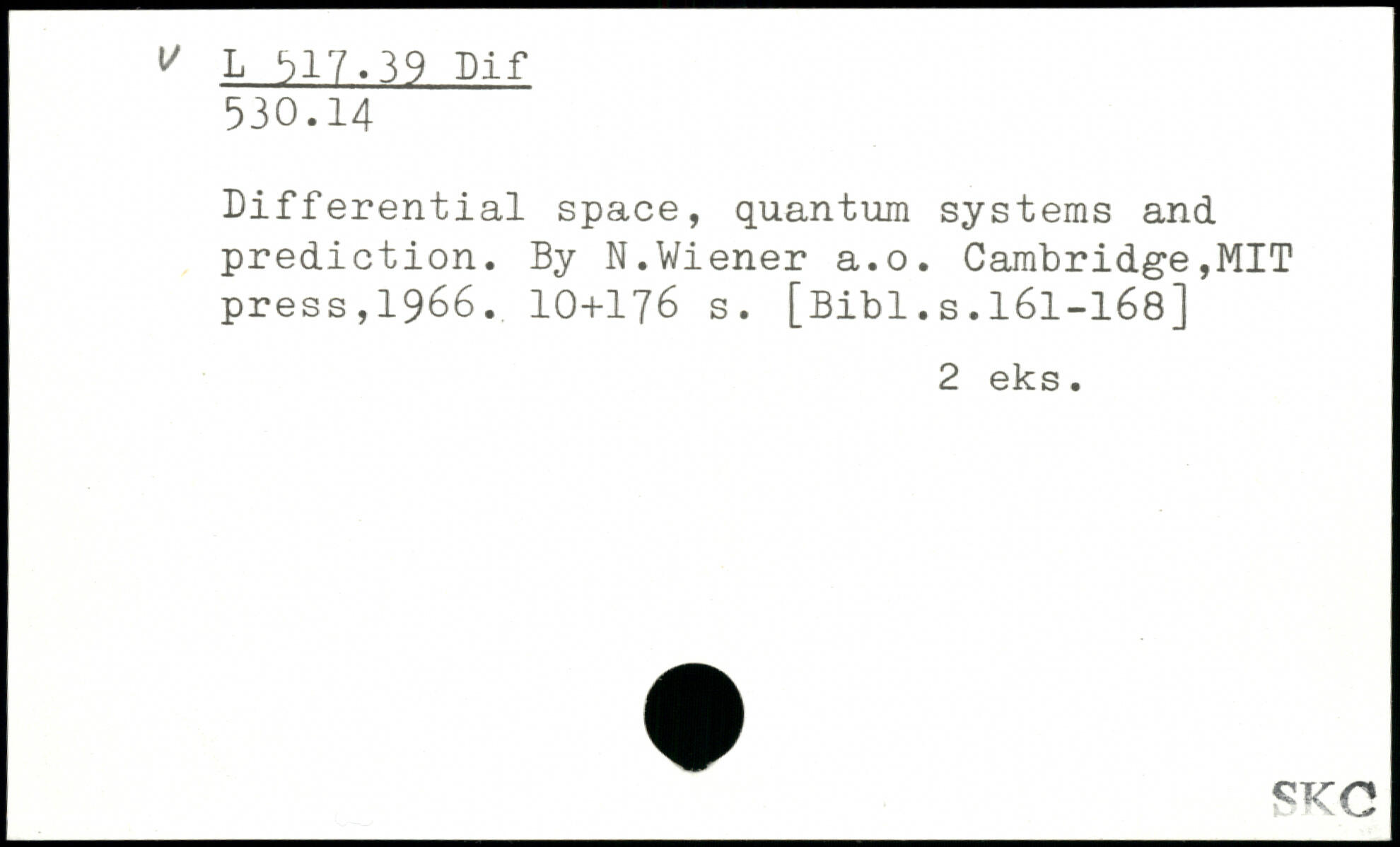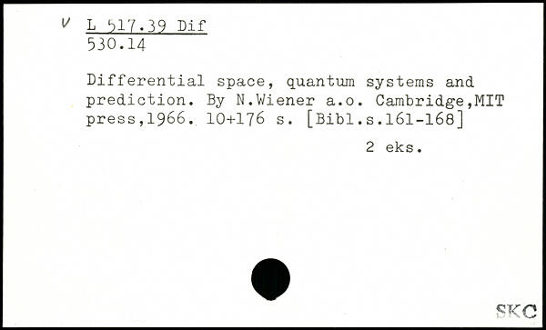 Differential space, quantum systems and prediction. By N.Wiener a.o.
