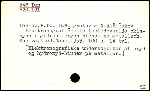 Darikov,P.D., D.V.Ignatov & N.A.Sisakov Elektronografieeskie issledovanija okis-nych i gidrookisnych pienok na metallach. Moskva,Akad.Nauk,1953.