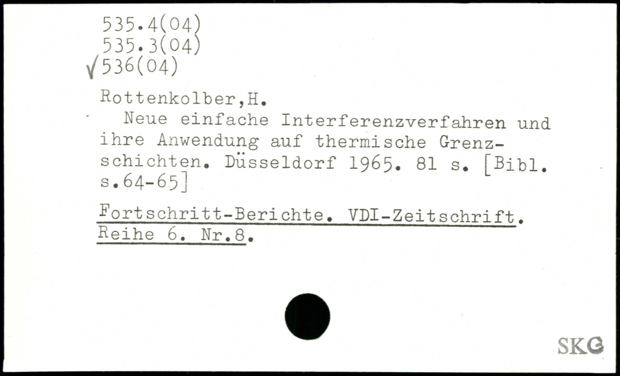 Neue einfache Interferenzverfahren und ihre Anwendung auf thermische Grenzschichten. Düsseldorf 1965.