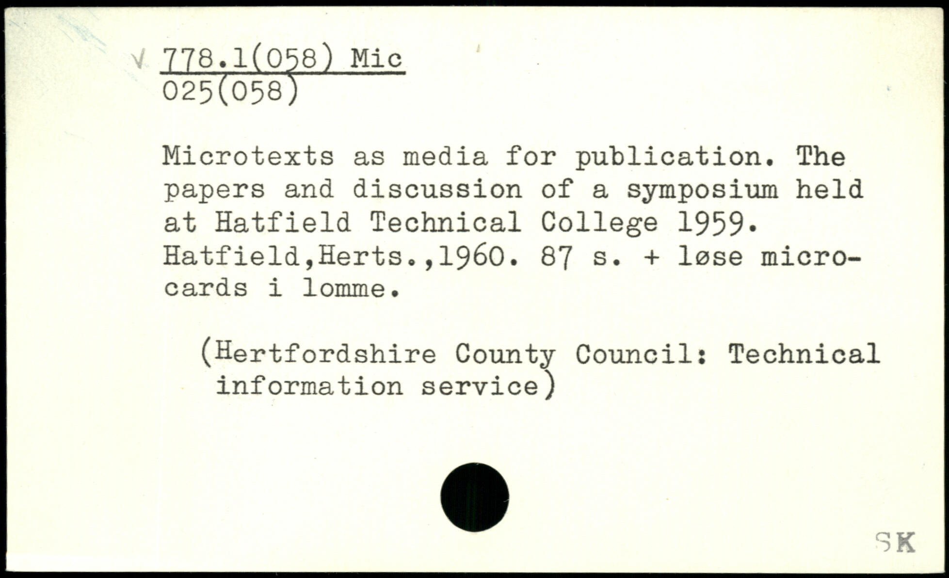 Microtexts as media for publication. The papers and discussion of a symposium held at Hatfield Technical College 1959.