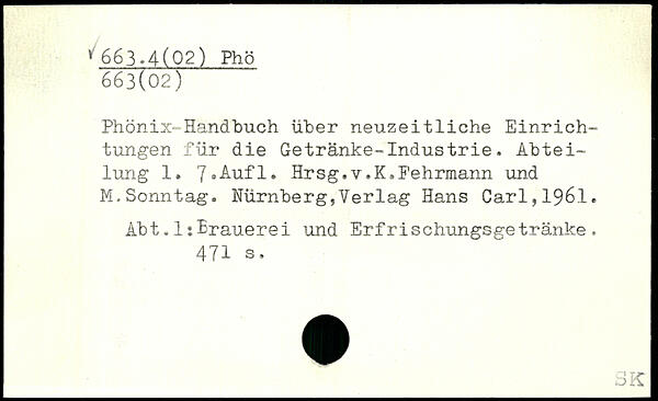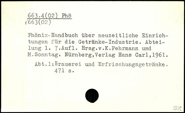 Phönix-Handbuch über neuzeitliche Einrichtungen für die Getränke-Industrie. Abteilung 1.