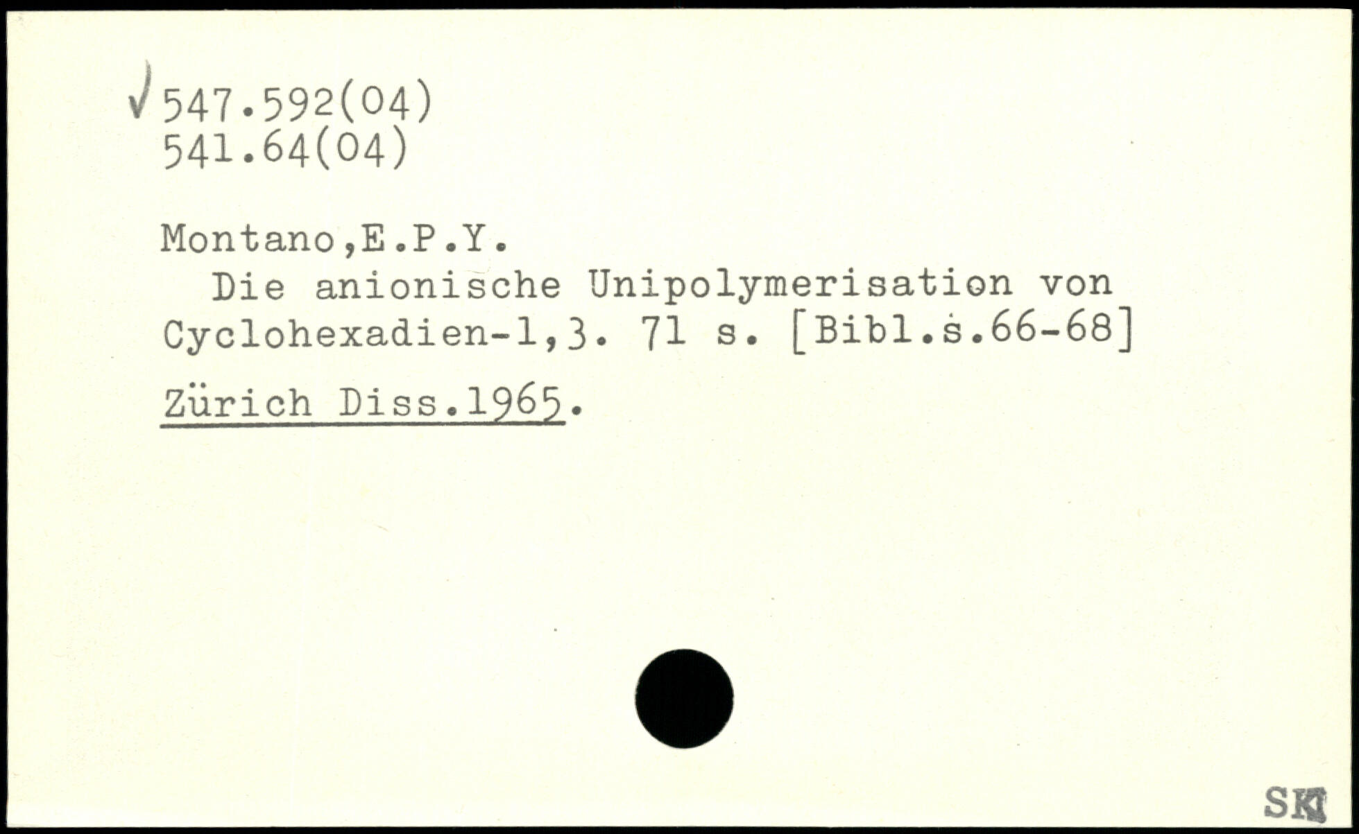 Pie anionische Unipolymerisation von Cyclohexadien-1,3.