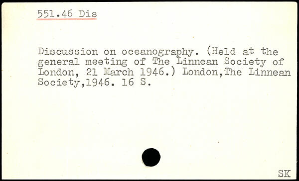 Discussion on oceanography. (Held at the general meeting of The linnean Society of London, 21 March 1946.)