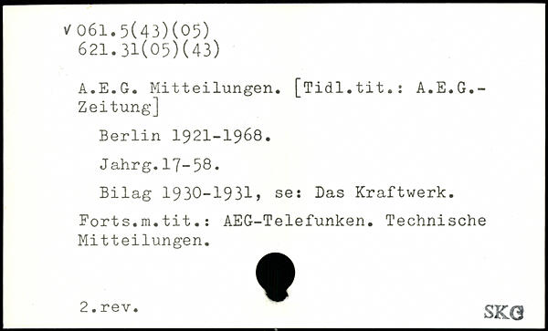 A.E.G. Mitteilungen. [Tidl.tit.: A.E.G.-Zeitung]