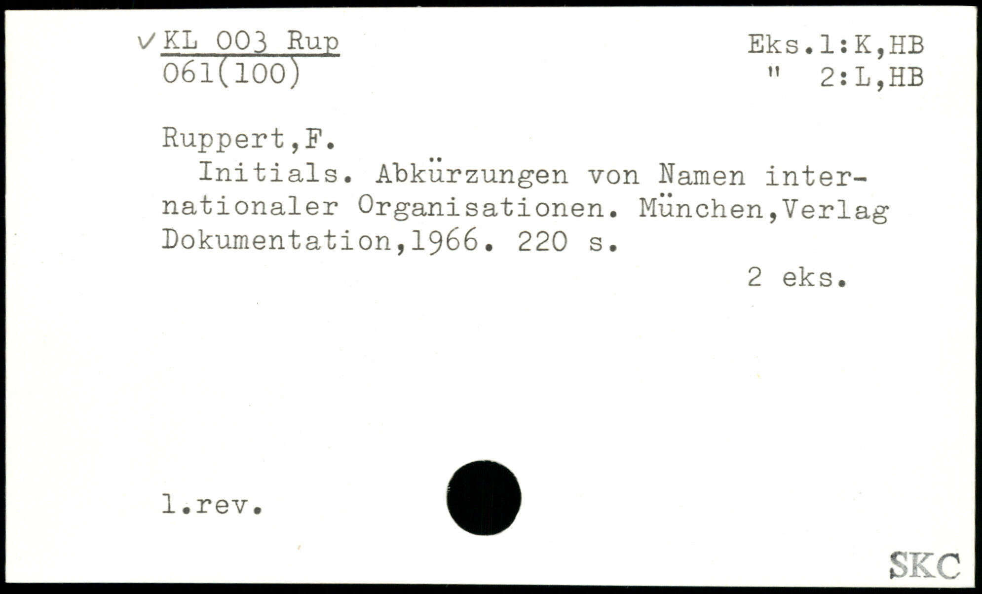 Initials. Abkurzungen von Namen internationaler Organisationen.