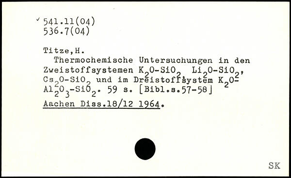 Thermochemische Untersuchungen in den ZweistoffSystemen K O-SiO Li^O-SiO^, Cso0-Si0o und im Dreistofräystem K_0-AlgO^-SiÖg.