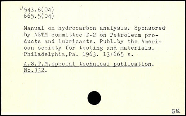 Manual on hydrocarbon analysis. Sponsored by ASTM committee D-2 on Petroleum products and lubricants.