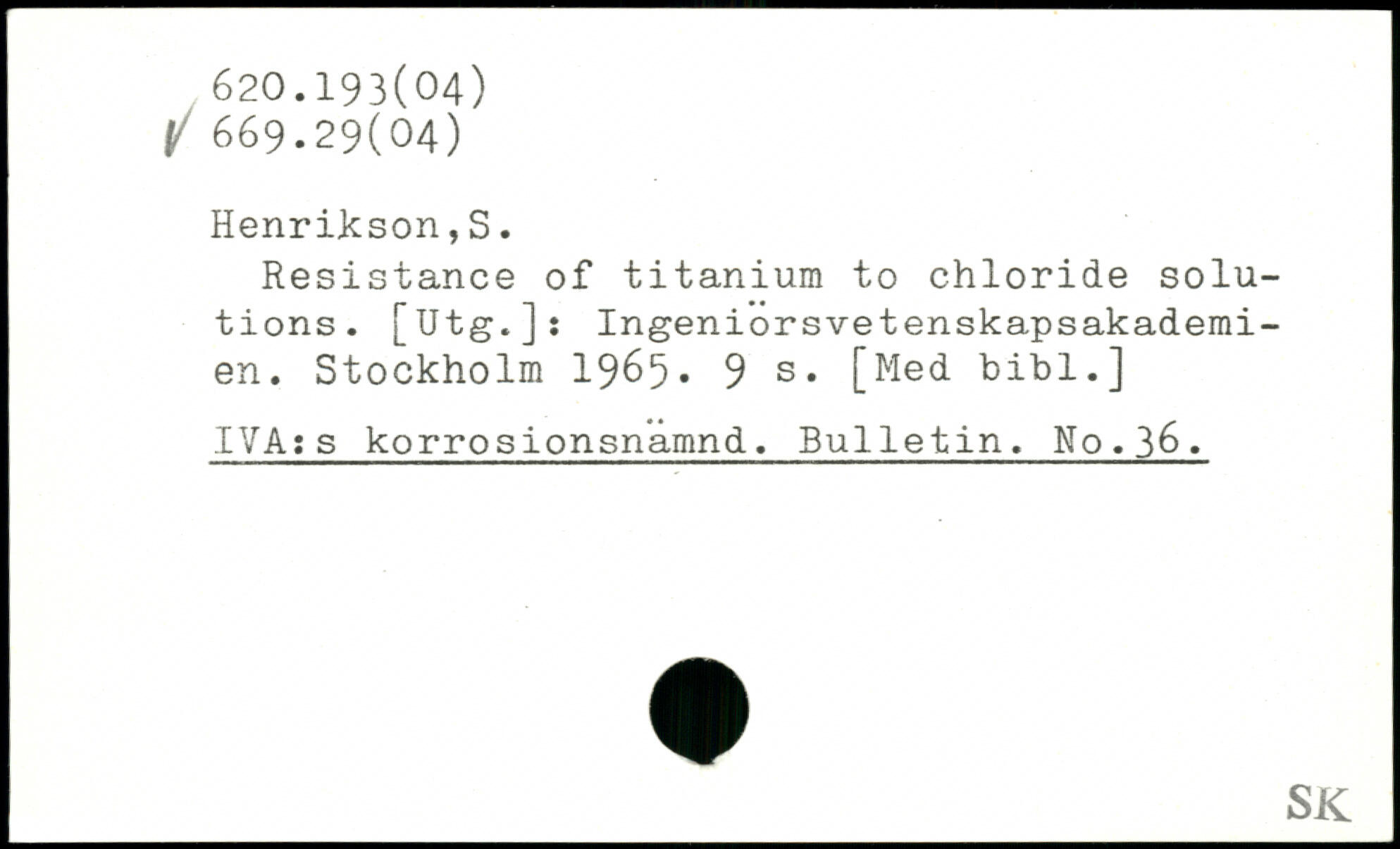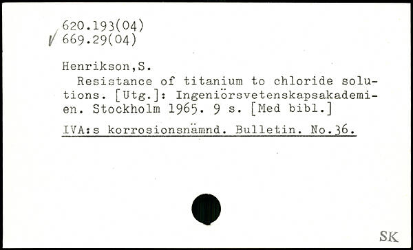 Resistance of titaniura to chloride Solutions. [Utg.]: Ingeniorsvetenskapsakademi-en.