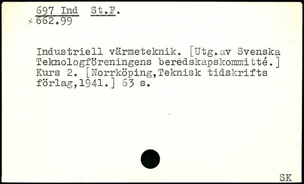 Industriell värmeteknik. [Utg.av Svenska Teknologföreningens beredskapskommitté.] Kurs 2. [