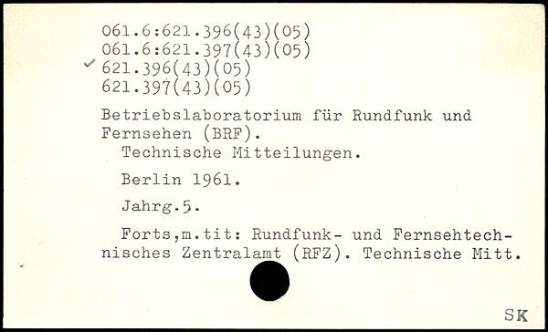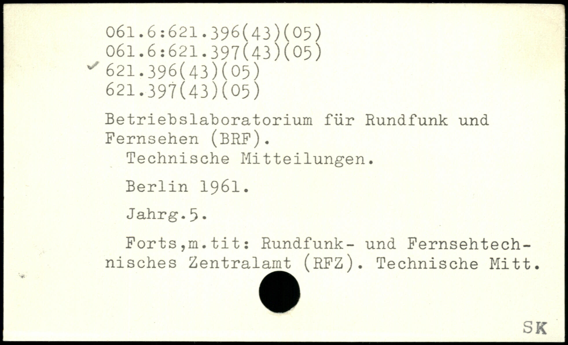 Betriehslahoratorium für Rundfunk und Fernsehen (BRF). Technische Mitteilungen.