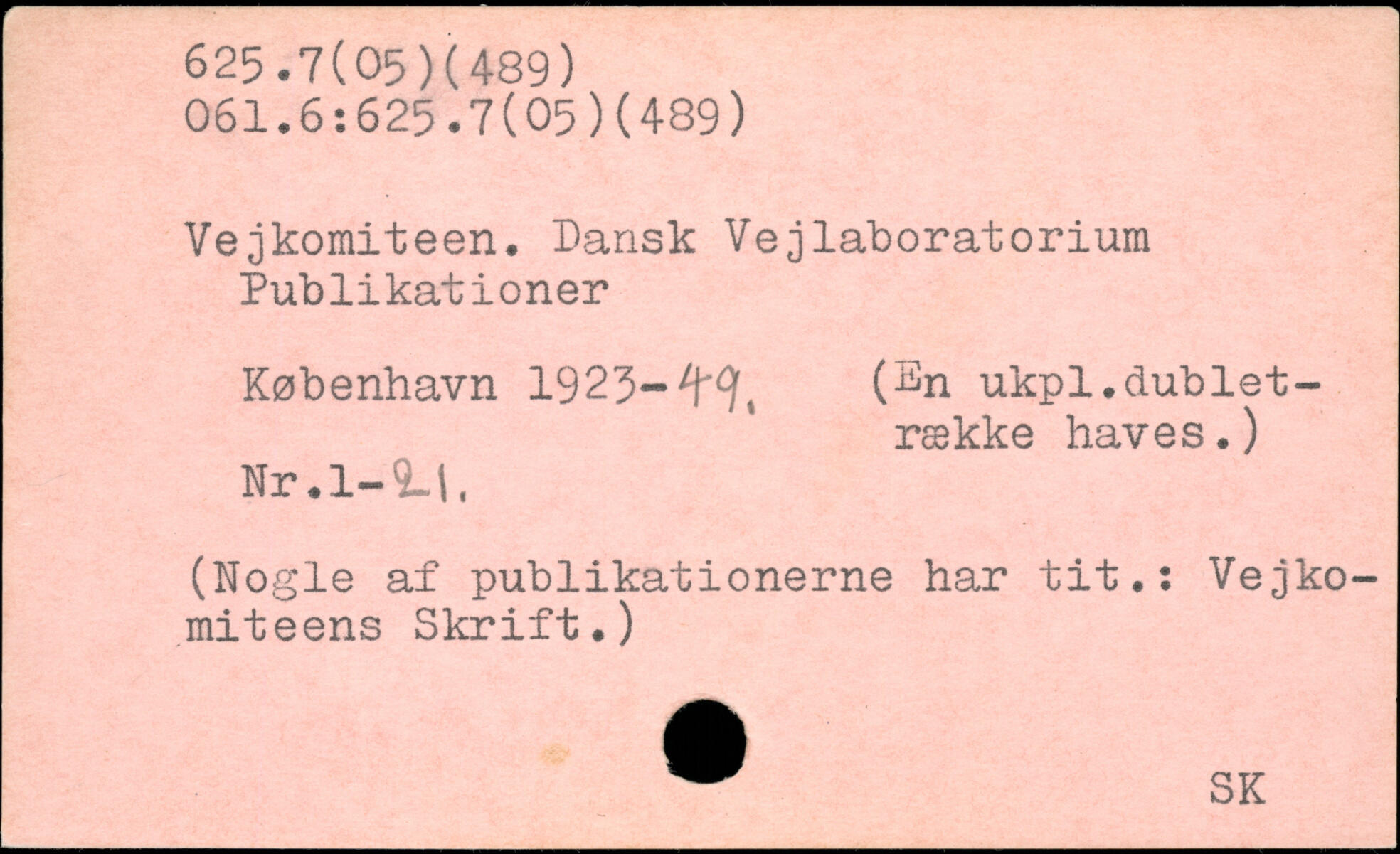 Vejkomiteen. Dansk Vejlaboratorium Publikationer