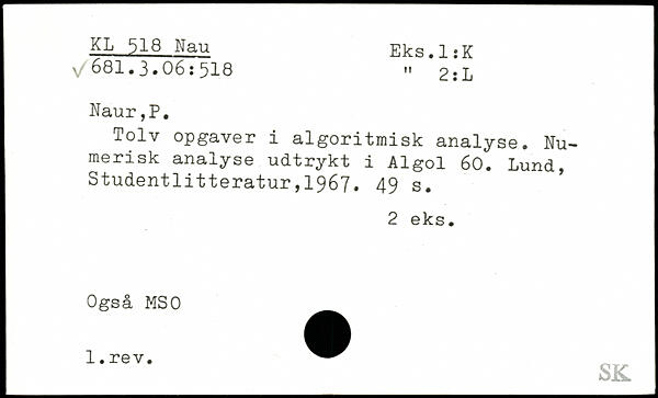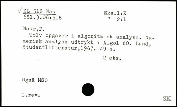 Tolv opgaver i algoritmisk analyse. Numerisk analyse udtrykt i Algol 60.