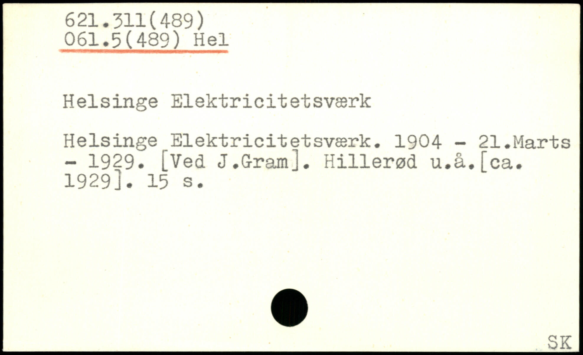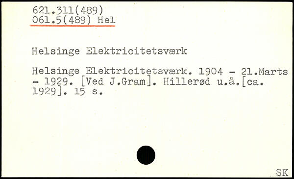 Helsinge Elektricitetsværk Helsinge Elektricitetsværk. 1904 - 21.Marts - 1929. [Ved J.G-ram]. Hillerød u.å.fca. 1929].