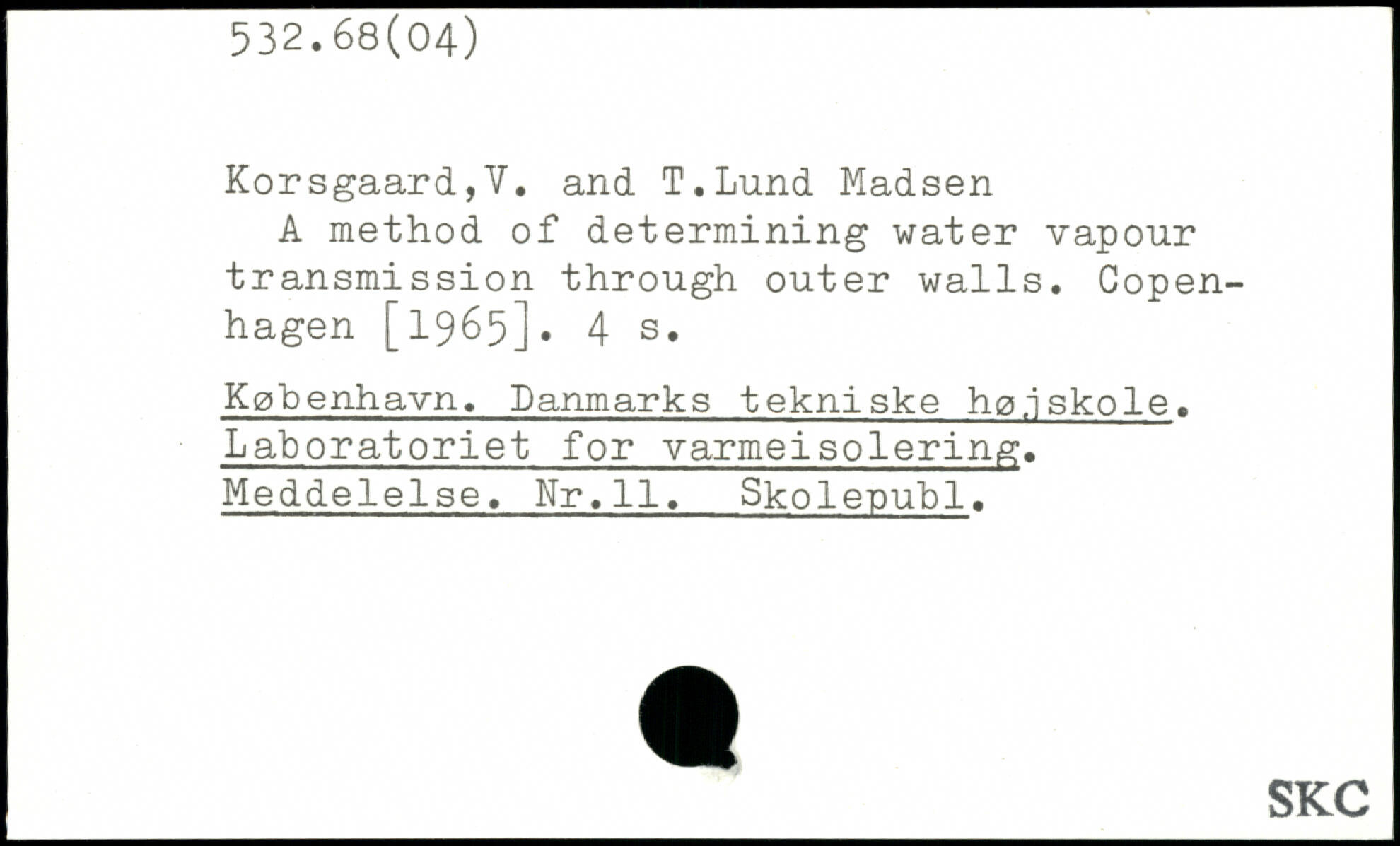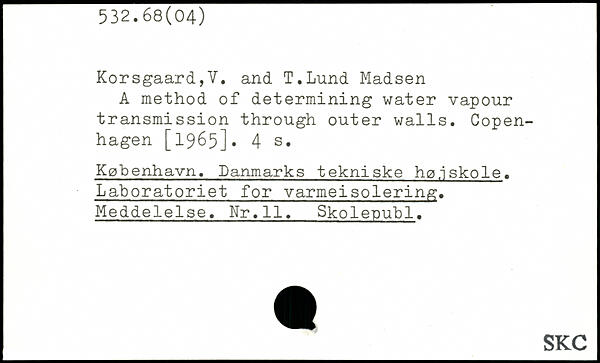 Korsgaard,V. and T.Lund Madsen A method of determining water vapour transmission through outer walls.
