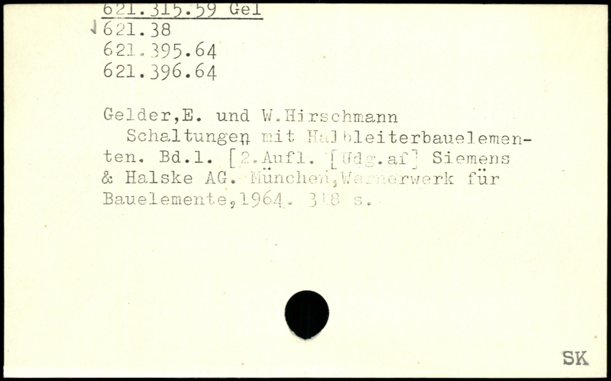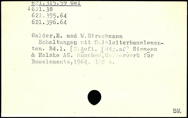 Gelder,E. und V/.Hirschmann Schaltungen Eit F- Jbleiterbauelemen-ten. Bd.l. [P.Aufl. [Udg.af! Siemens & Halske AG. iiunchevi,VA. .erwerk für Bauelementes 1964 - 3.