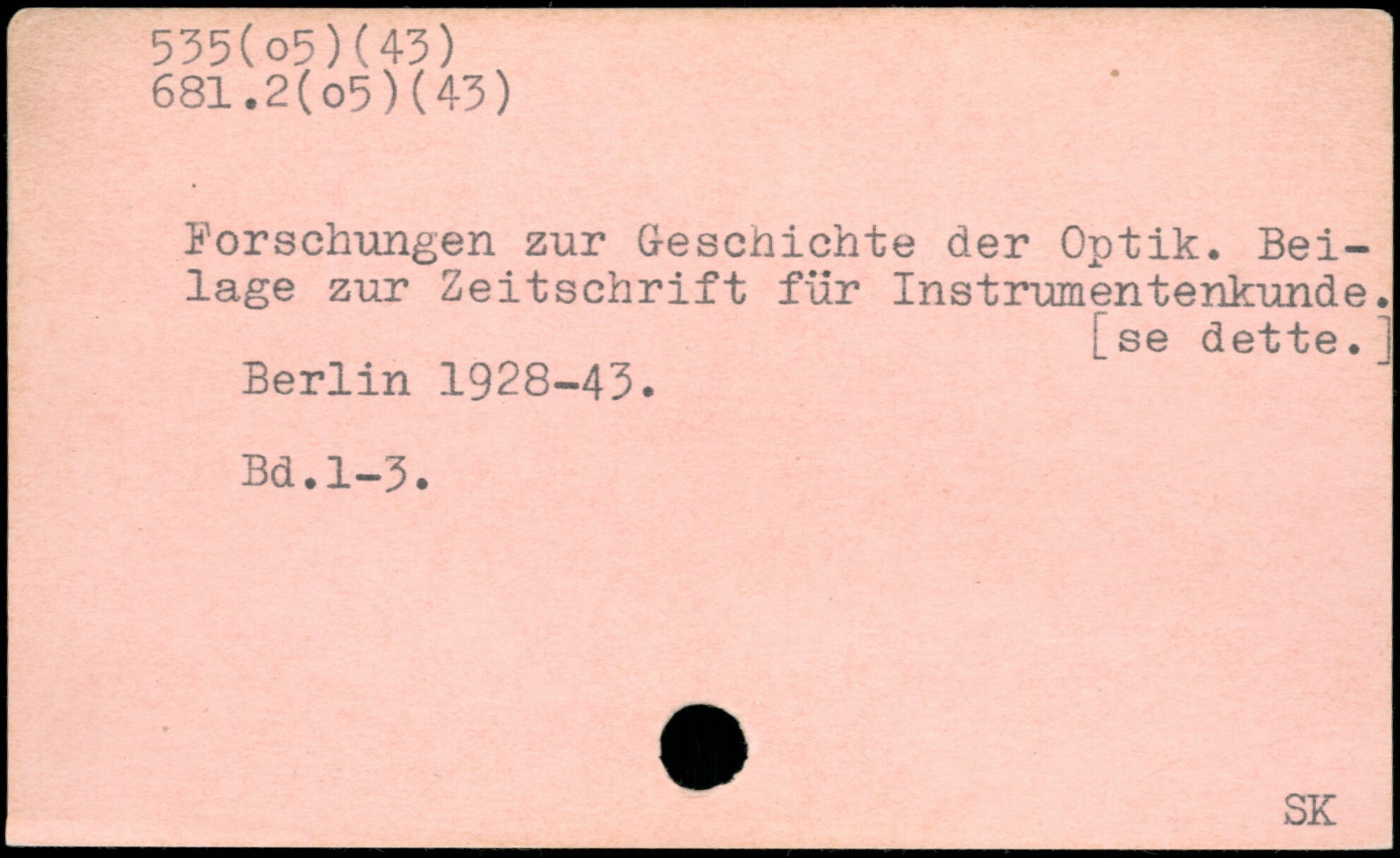 Forschungen zur G-eschichte der Optik. Beilage zur Zeitschrift für Instrumentenkunde.