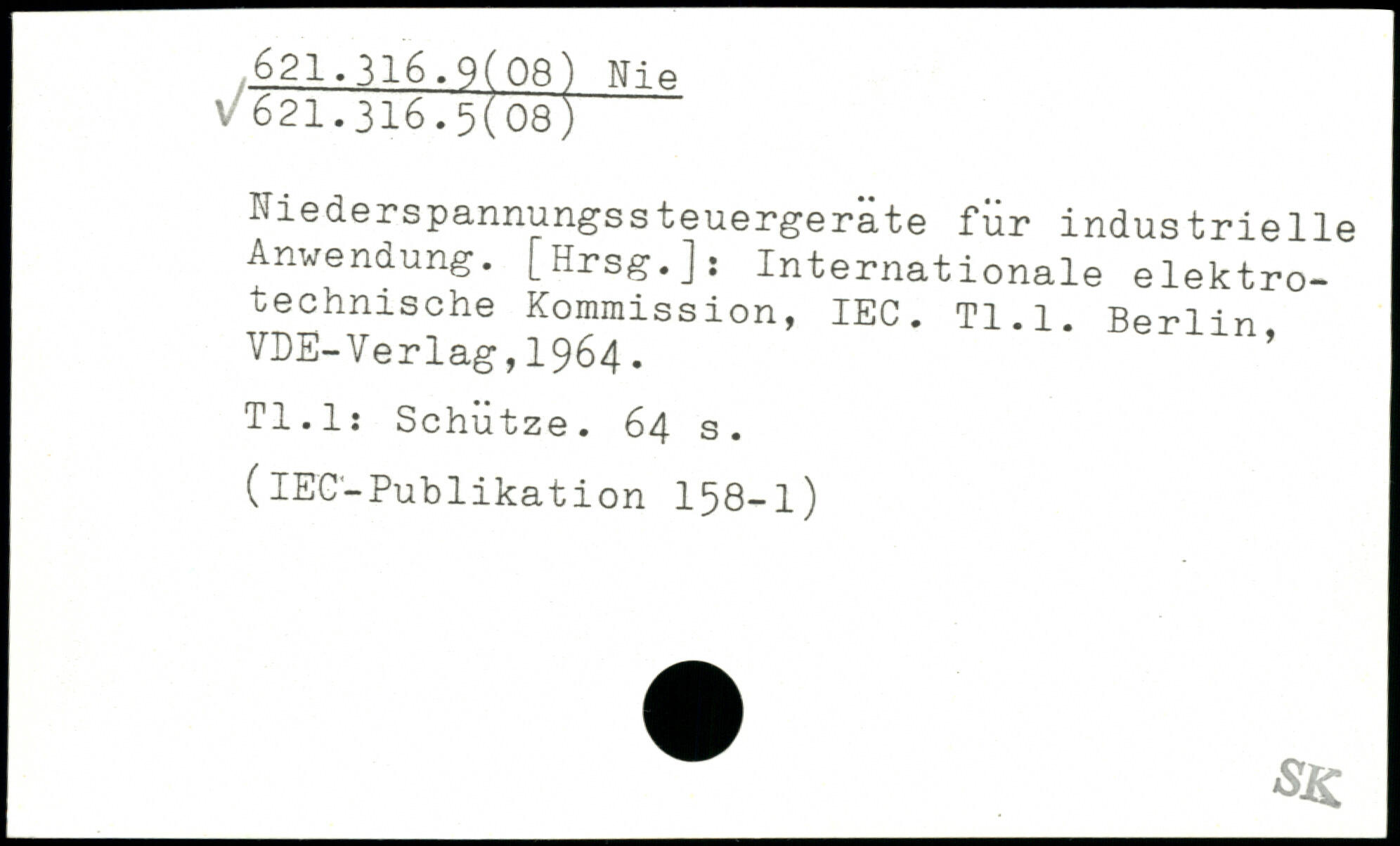 Niederspannungssteuergeräte für industrielle Anwendung. [Hrsg.]: Internationale elektrotechnische Kommission, IEC. Tl.l Bp-rlin VDE-Verlag,1964. . ’ Tl.l: Schutze.