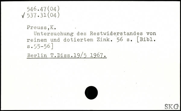Untersuchung des Restwiderstandes von reinem und dotiertem Zink.