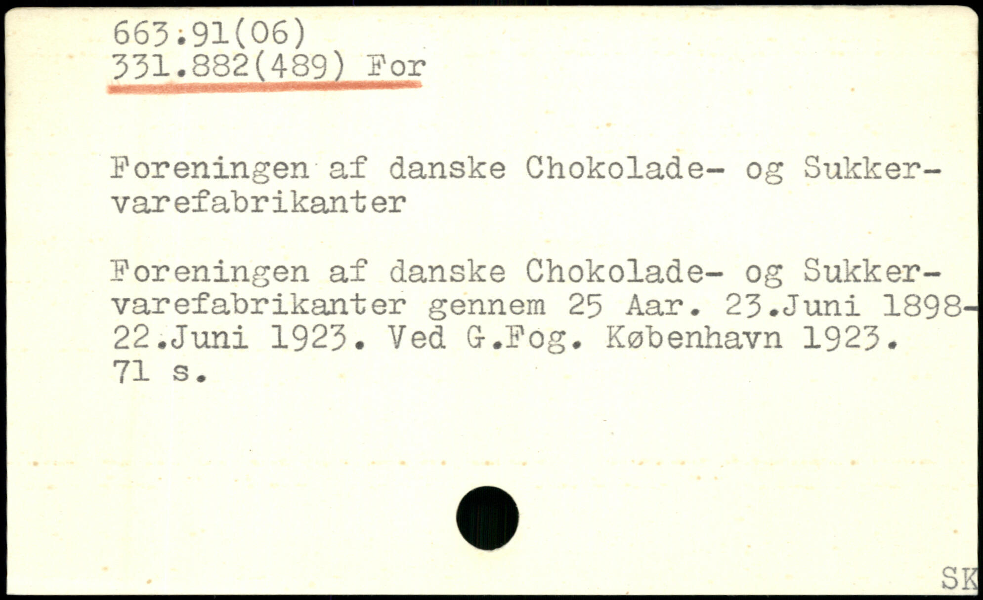 Foreningen af danske Chokolade- og Sukkervar efabrikant er Foreningen af danske Chokolade- og Sukkervar efabrikant er gennem 25 Aar. 23.Juni 1898-22.Juni 1923. Ved G-.Fog.