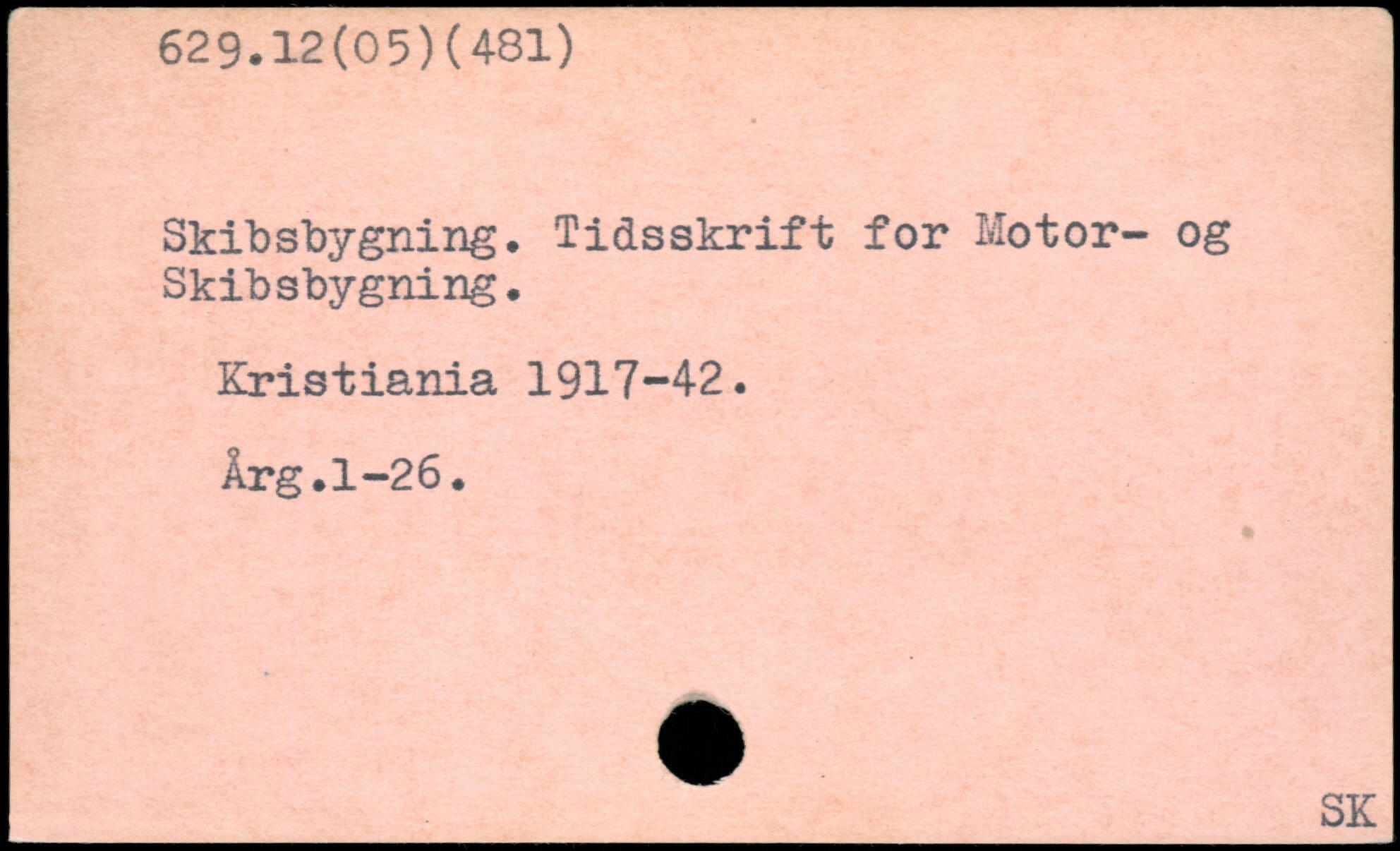 Skibsbygning. Tidsskrift for Motor- og Skibsbygning. Kristiania 1917-42. Årg.1-26.