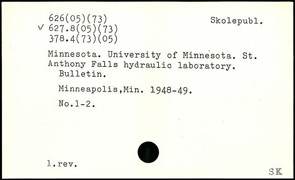 Minnesota. University of Minnesota. St. Anthony Falls hydraulic laboratory. Bulletin. Minneapolis,Min. 1948-49. No.1-2.