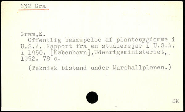 Offentlig bekæmpelse af plantesygdomme i U.S.A. Rapport fra en studierejse i U.S.A. i 1950. [København],Udenrigsministeriet, 1952.