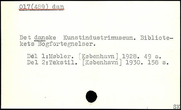 Det danske Kuns tindust rimus eum. Bibliotekets Bogfortegnelser. Del IsMøbler.