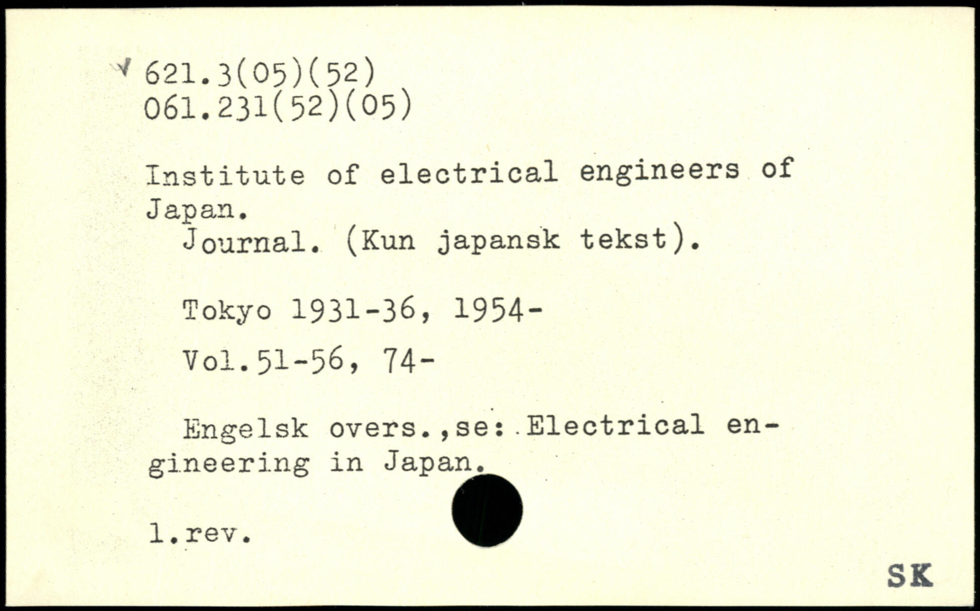 i Institute of electrical engineers of Japan. Journal. (Kun japansk tekst).