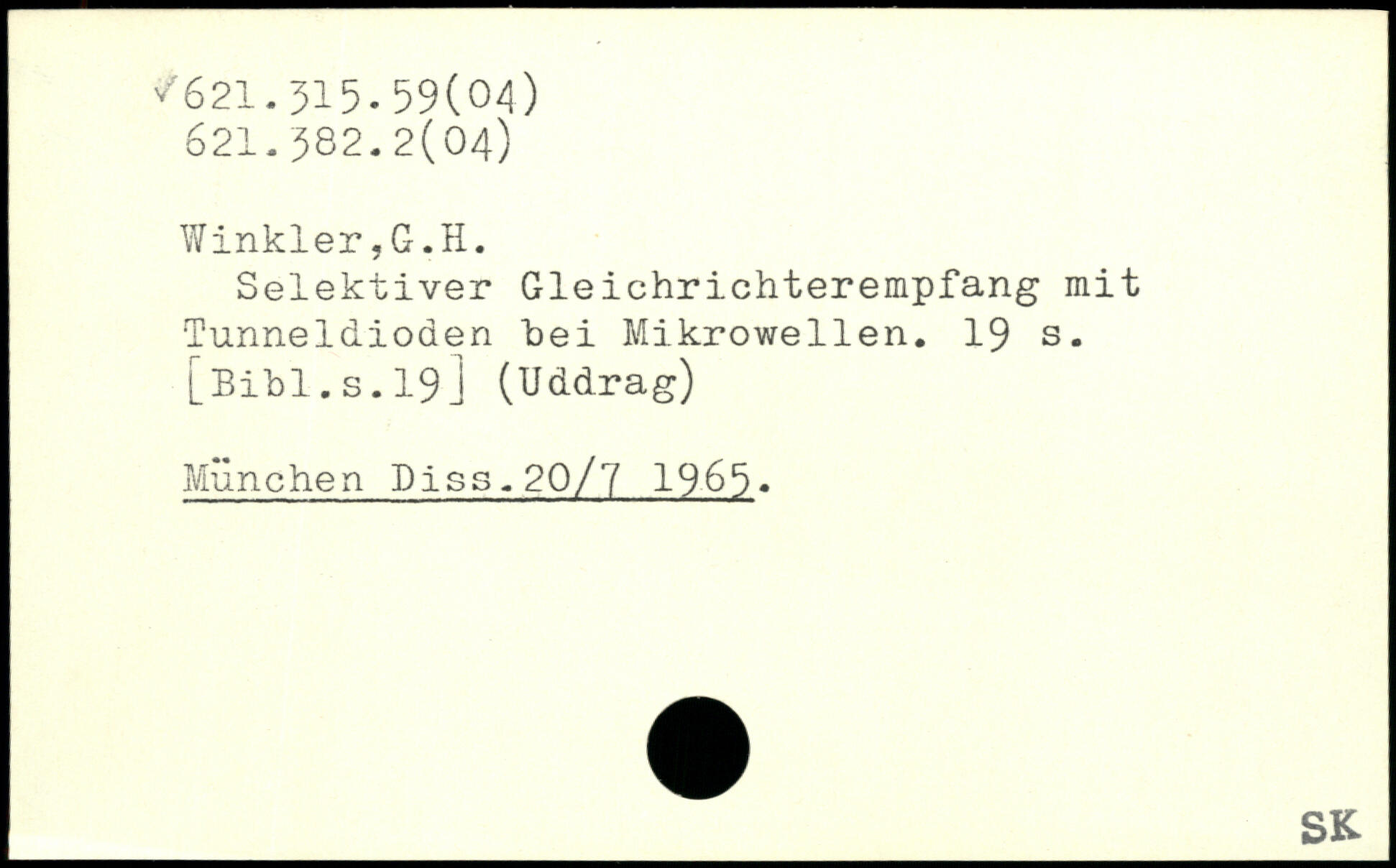 Selektiver Gleichrichterempfang mit Tunneldioden hei Mikrowellen.