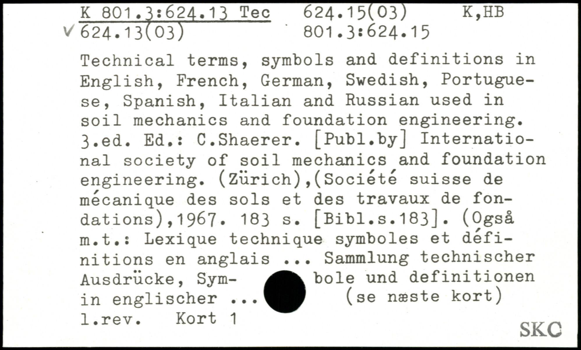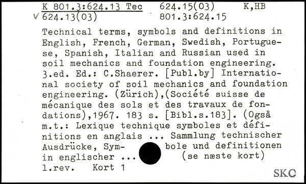 Technical terms, symbols and definitions in English, French, German, Swedish, Portuguese, Spanish, Italian and Russian used in soil mechanics and foundation engineering.