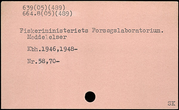 Fiskeriministeriets Fors øgslaboratorium. Meddelelser Kbit. 1946,1948- Kr.58,70- ® SK