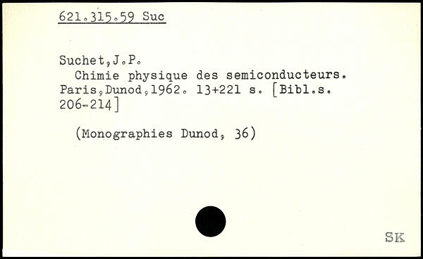 Chimie physique des semiconducteurs, PariSçDunod,1962o