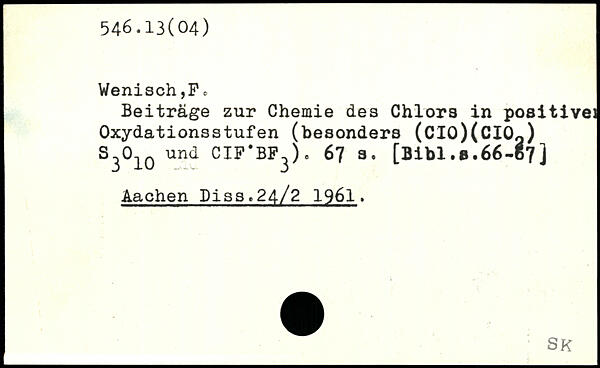 Wenisch,F c Beiträge zur Chemie des Chlors in positive] Oxydationsstufen (besonders (CI0)(CI0Q) S301Q und CIF.BF3). 67 3.