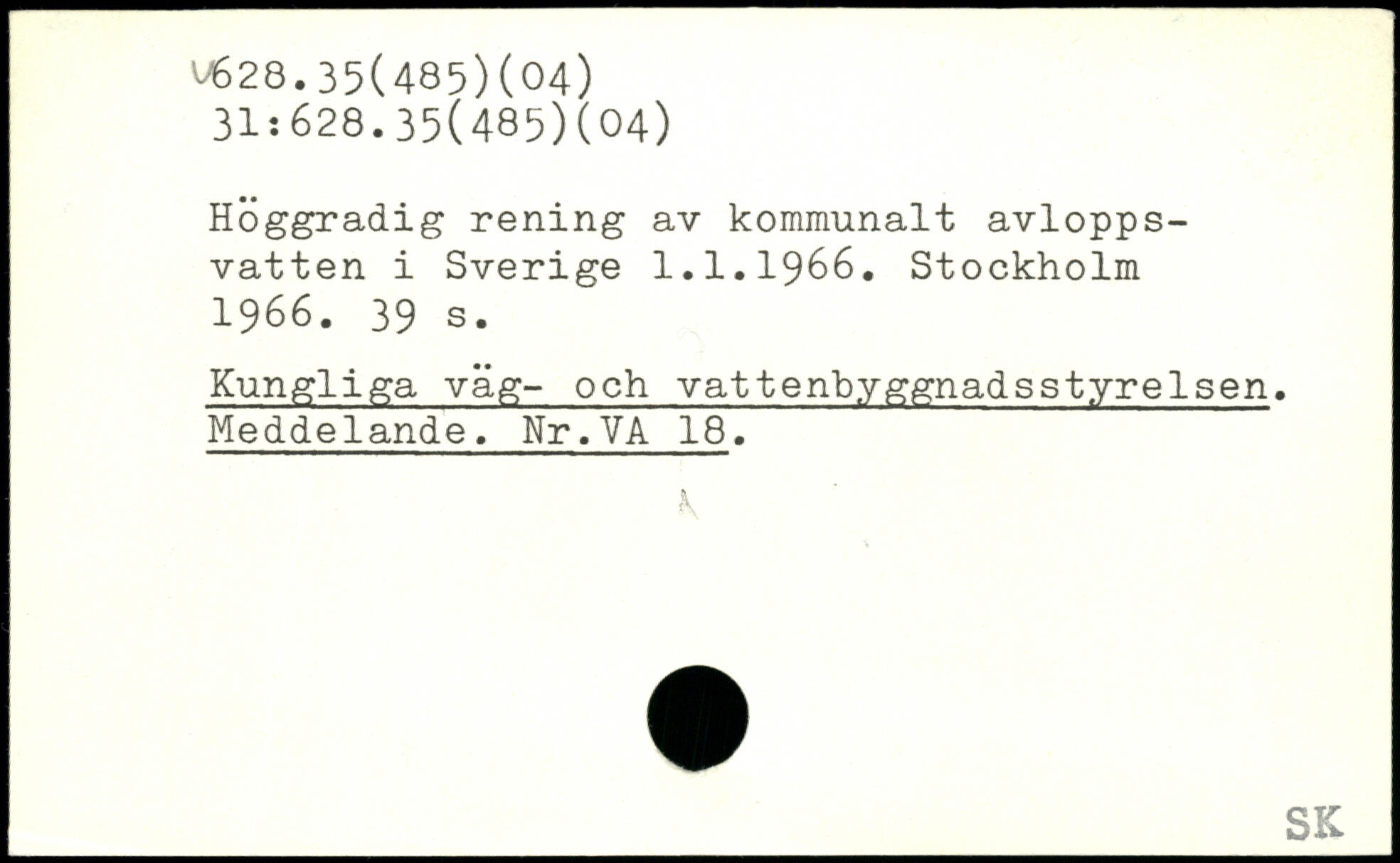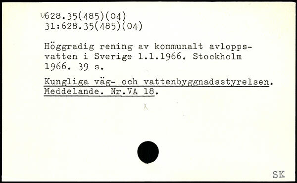 Höggradig rening av kommunalt avloppsvatten i Sverige 1.1.1966.