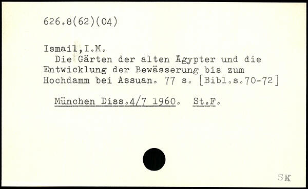 Ismail,I,Mo Die Gärten der alten Igypter und die Entwicklung der Bewässerung bis zum Hochdamm bei Assuan
