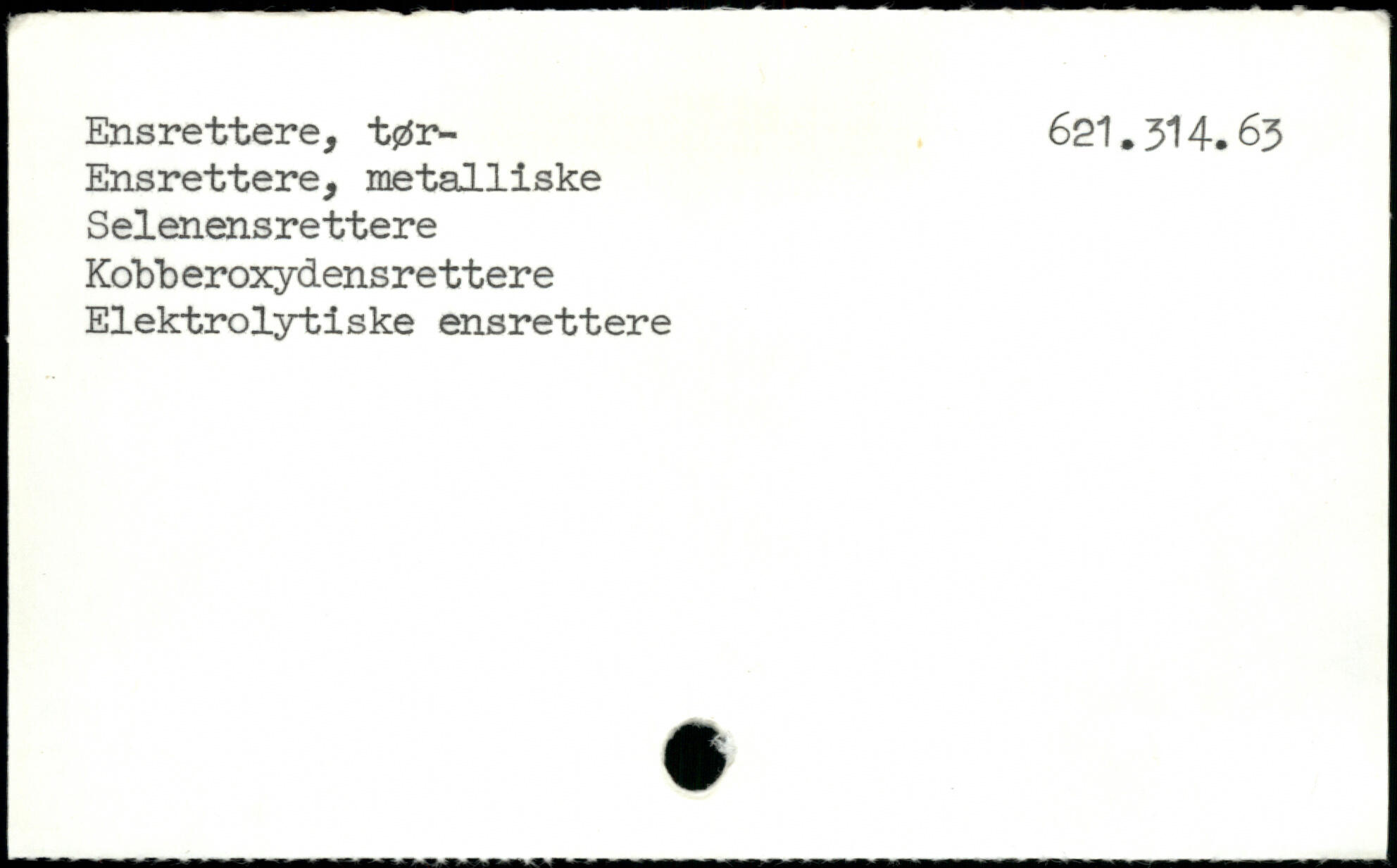 Ensrettere, metalliske Selenensrettere Kobberoxydensrettere Elektrolyt!ske ensrettere