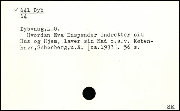 Hvordan Eva Enspænder indretter sit Hus og Hjem, laver sin Mad o.s.v. København ,Schønberg,u.å. [ca.1933].
