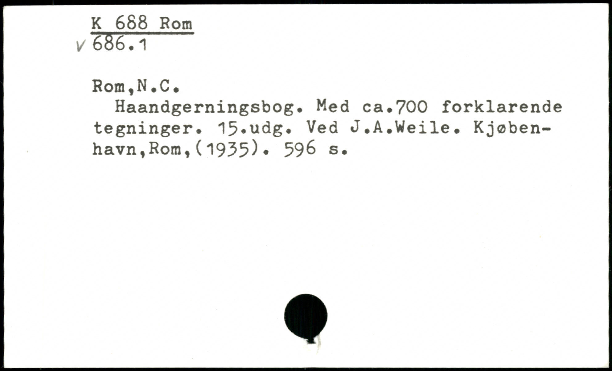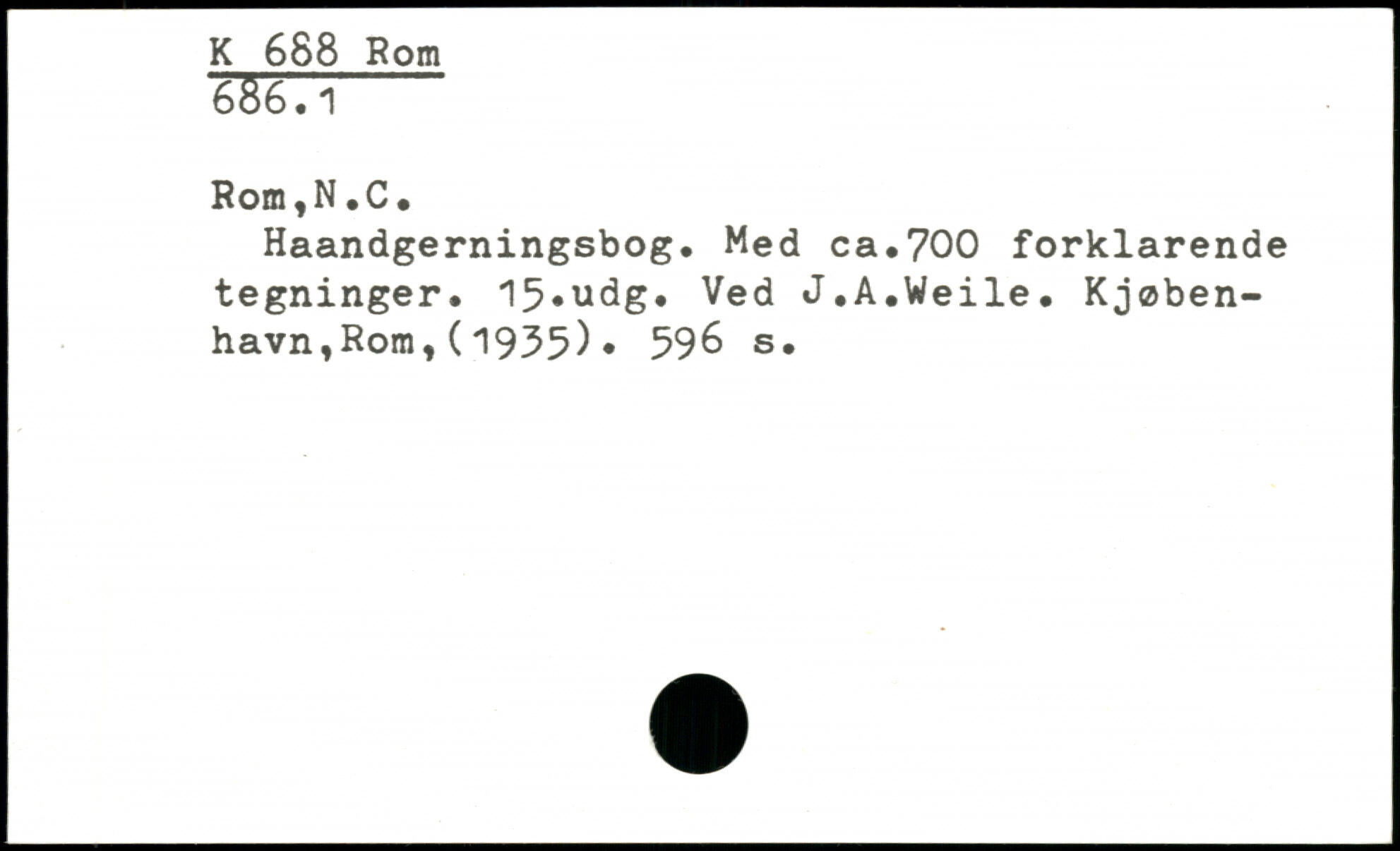 Haandgerningsbog. Med ca.700 forklarende tegninger. 15,udg. Ved J.A.Weile. Kjøben-havn,Rom,(1935). 59& s.