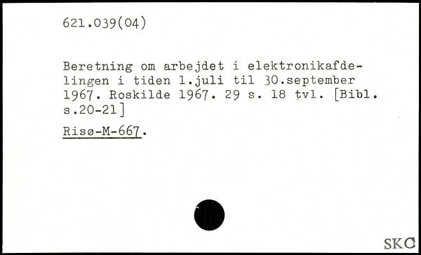 Beretning om arbejdet i elektronikafdelingen i tiden l.juli til 30.september 1967. Roskilde 1967.