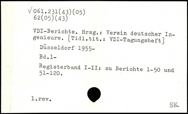 VDI-Berichte, Hrsg. : Verein deutscher Ingenieure. [Tidl.tit.i VDI-Tagungsheft] Düsseldorf 1955- Bd.l- 51g120erband 1-111 ZU ■Berichte 1-50 und