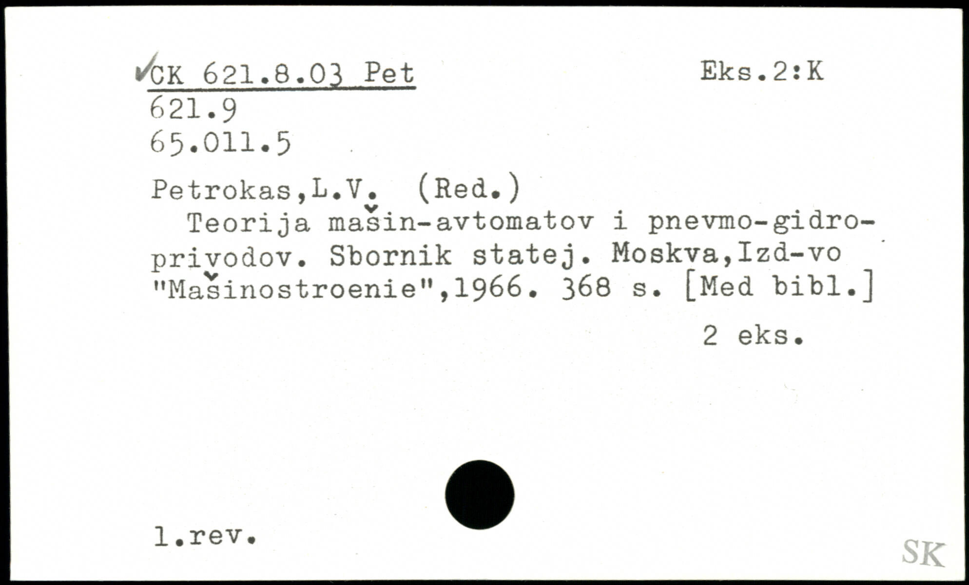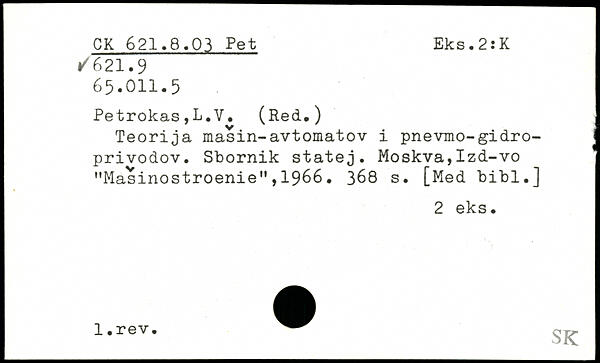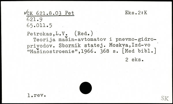 Teorija masin-avtomatov i pnevmo-gidro-privodov. Sbornik statej. Moskva,Izd-vo "Masinostroenie",1966.