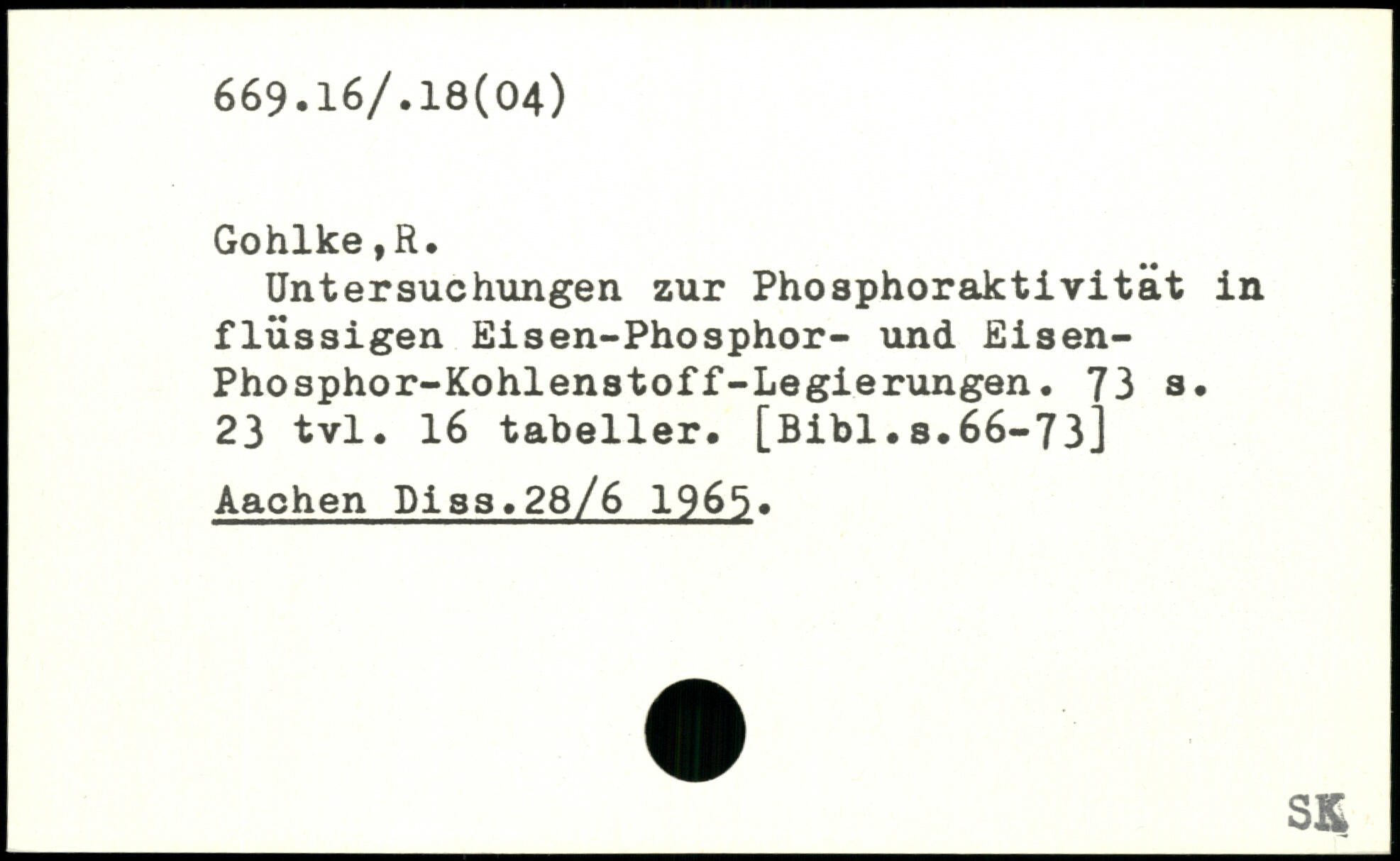 Untersuchungen zur Phosphoraktivität in flüssigen Eisen-Phosphor- und Eisen-Phosphor-Kohlenstoff-Legierungen. 73 3. 23 tvl. 16 tabeller.